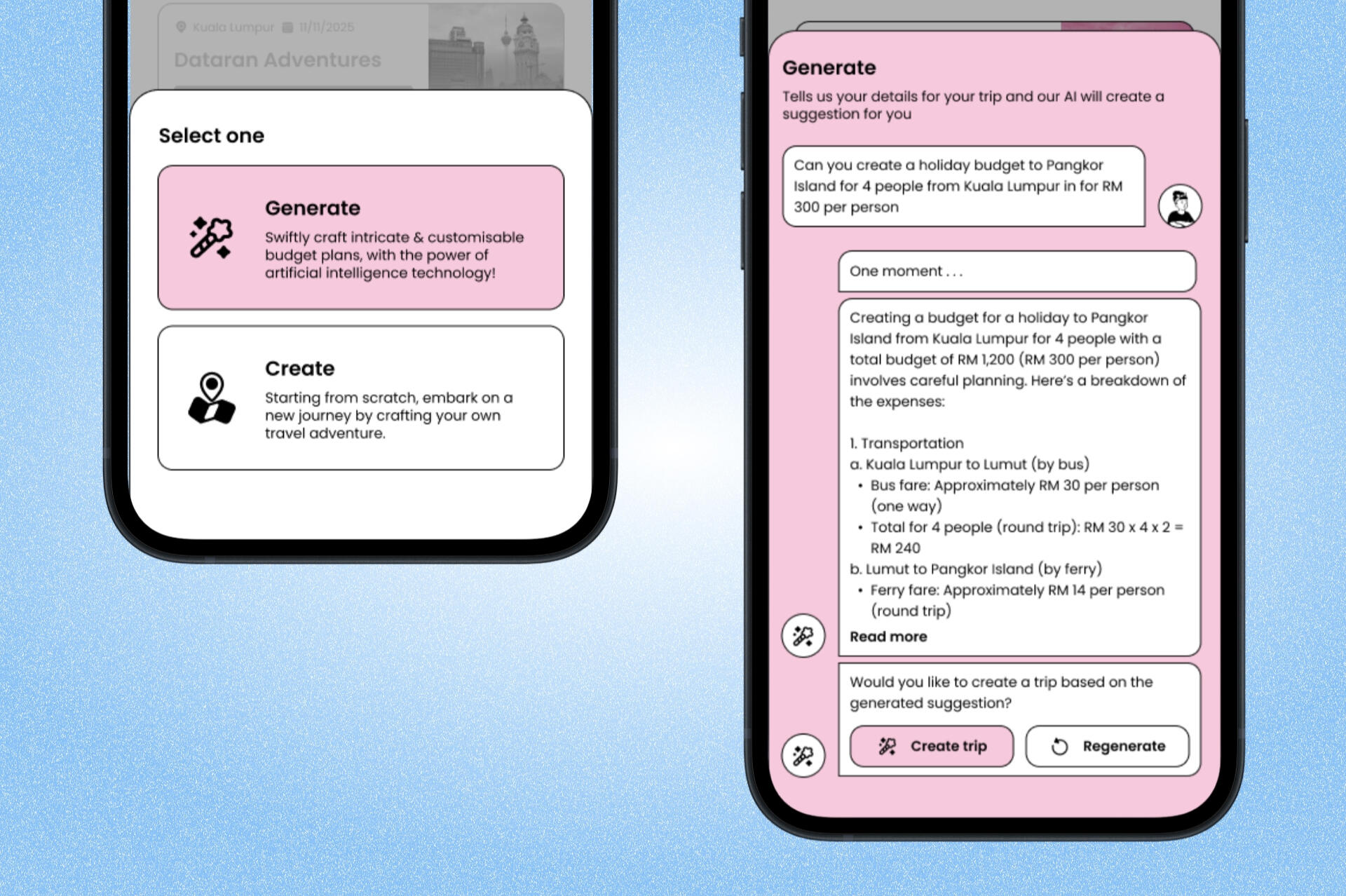 I designed the app concept with user flows, wireframes, and visual mockups that integrated group budgeting, expense tracking, and financial visualisation. The outcome highlighted how these features could simplify financial planning for group travel, making money management more transparent, efficient, and stress-free.