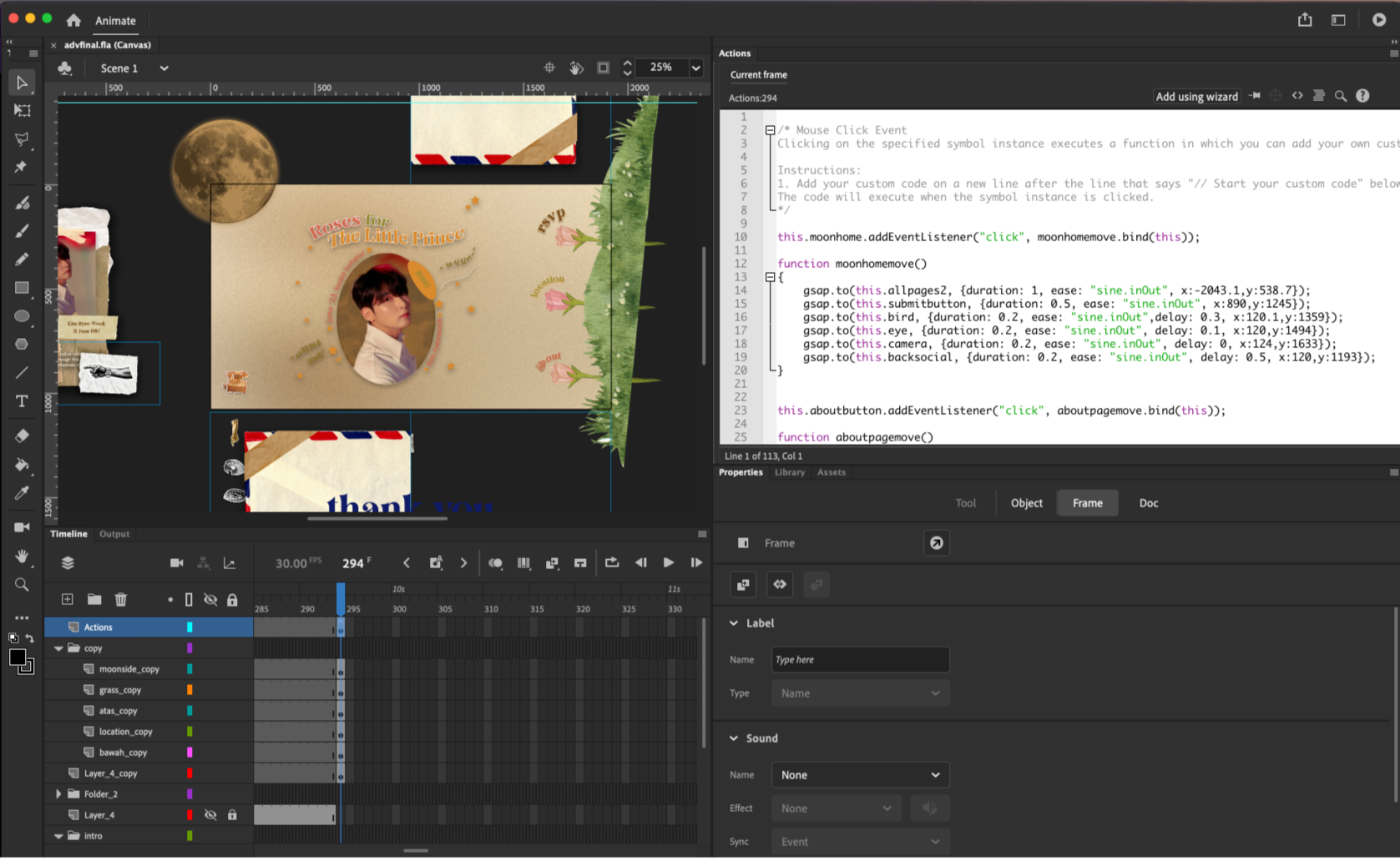 We were required to use Adobe Animate CC for this project with the help of GSAP, a Javascript Framework for the animations. It was a challenge as we had to use keyframes instead of the traditional coding HTML & CSS but you would do a lot more interesting motions a lot easier with Adobe Animate CC. I deployed my site on Netlify but the loading is quite slow due to the designs being big in size.
