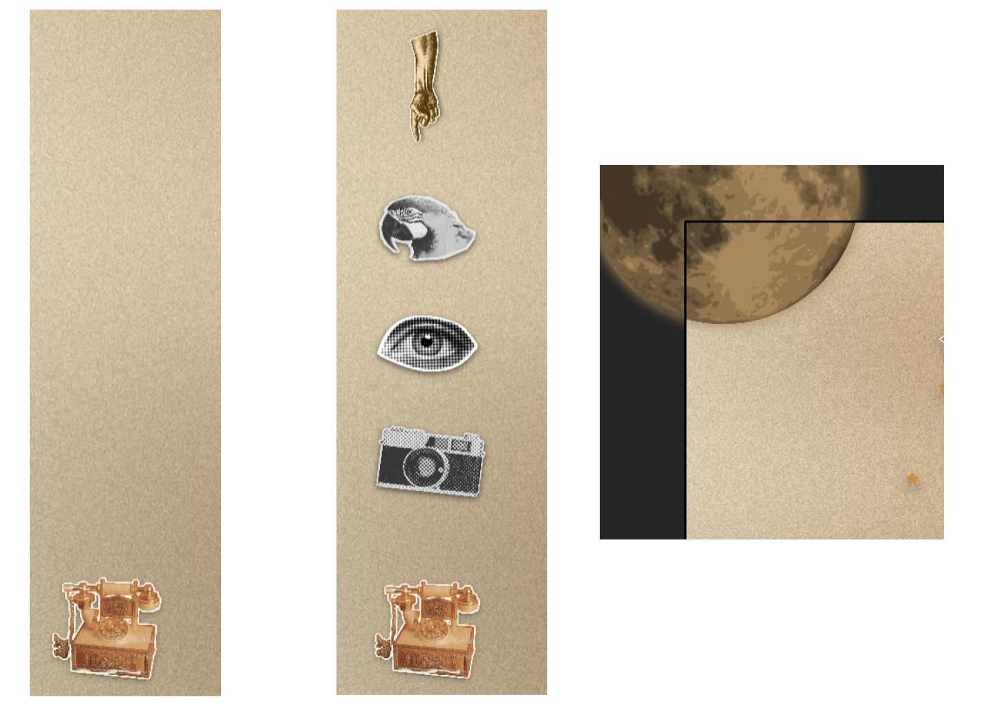 I created this Hamburger Social Media button on the side, when you click on the classic telephone (A representation for social media) the 4 images, Camera (Instagram), Eye (Email) & Bird (Twitter or X) slides up, alongside with the hand which acts as a close button for the hamburger. An addition to that, the moon in the corner spins and also acts as a home button.