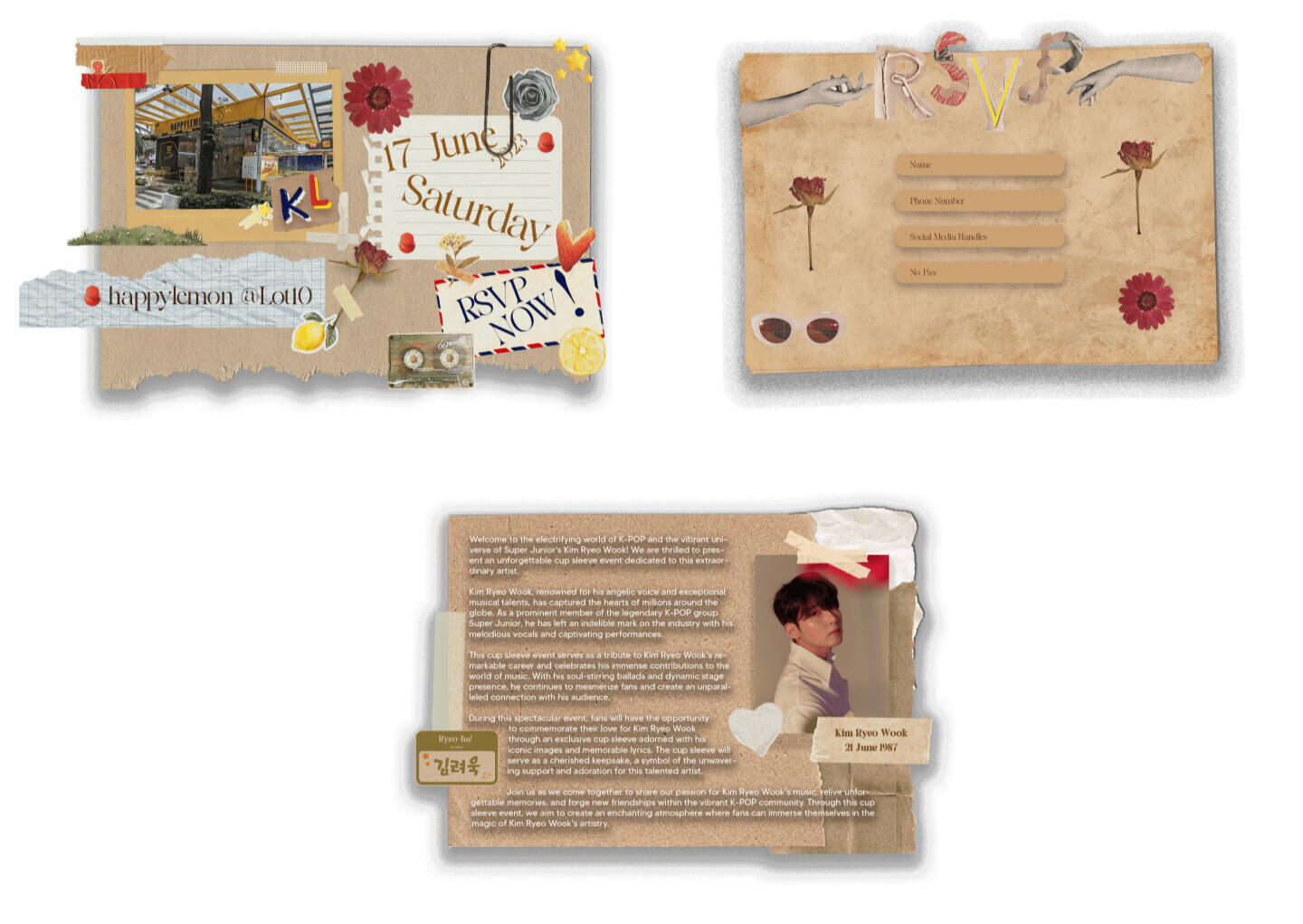 The goal of the project was to create a microsite using mainly Adobe Animate CC for the animation portion. I created a microsite for a cup sleeve event for Super Junior's Kim Ryeowook in Kuala Lumpur organised by RyeongguMY & E.L.F Kingdom Malaysia for the project. The keyart and art direction were given by my client.