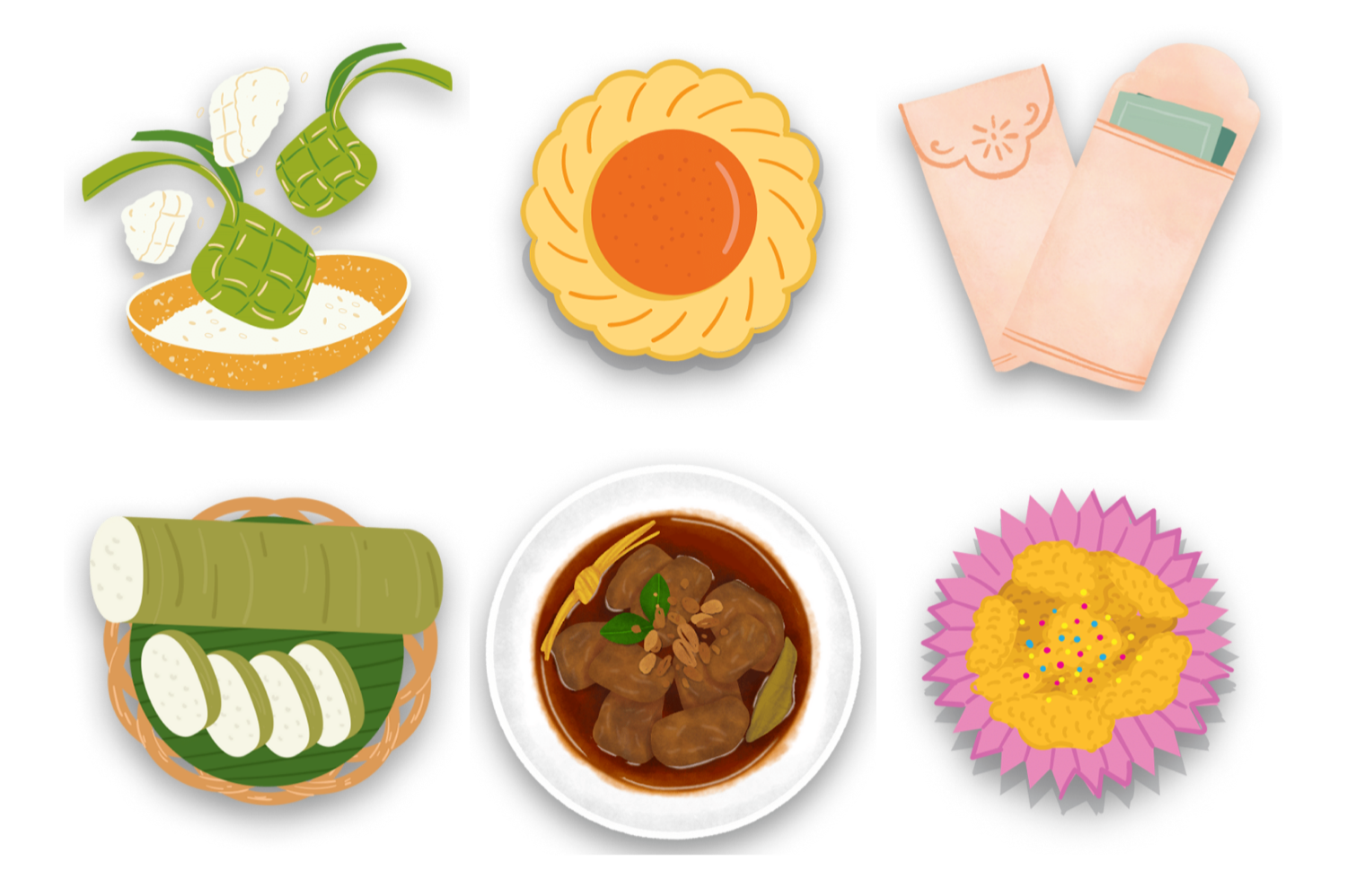 I started the mechanism part of my project by finding tutorials on how to make soundboards on Effect House. Afterwards, I started planning the musical part of the project with the help of my partner. My partner created a simplified version of the song "Suasana Hari Raya" by Anuar Zain & Ellina, which is an iconic song for Eid in Malaysia. He was able to reduce the song to only 6 notes and I finalised my sketch with 6 buttons for my gamified filter. 6 Buttons will appear on the screen and each of them will play a different note.I found assets online and each button of the filter is Hari Raya themed, such as different type of kuih & traditional food and items such as money packets. I also applied an Image of a Kampung for the background of the filter.