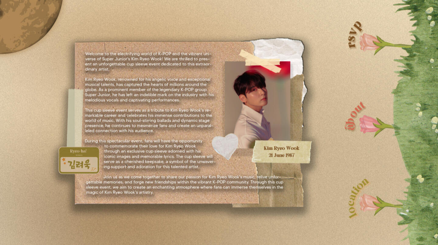 A microsite for a cup sleeve event for Kim Ryeowook in Kuala Lumpur organised by RyeongguMY & E.L.F Kingdom Malaysia.